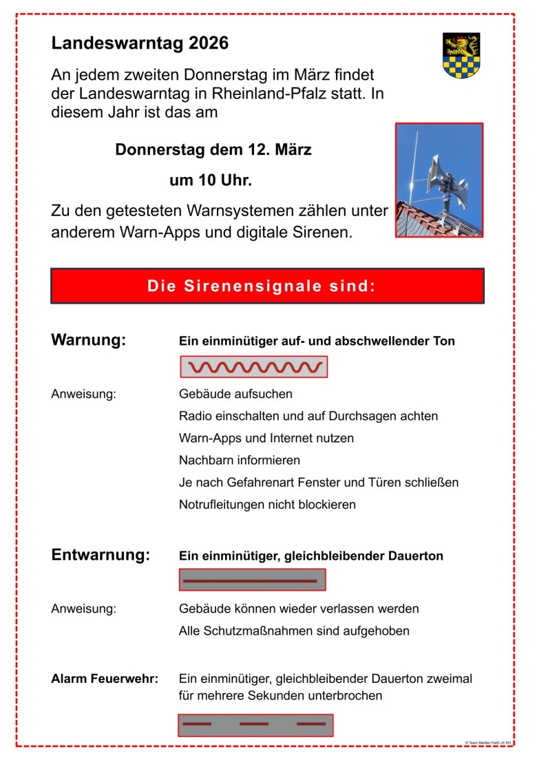 Am Donnerstag, dem 12. März 2026, findet in Rheinland-Pfalz der zweite landesweite Warntag statt.