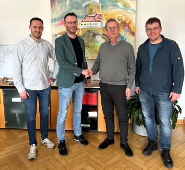 Foto (vlnr): Philipp Schultheiß (KV Kusel), Landrat Johannes Huber, Uwe Engelmann, Bürgermeister der VG Nahe-Glan und Geschäftsführer der WiFög, und Philipp Gruber (KV Kusel)