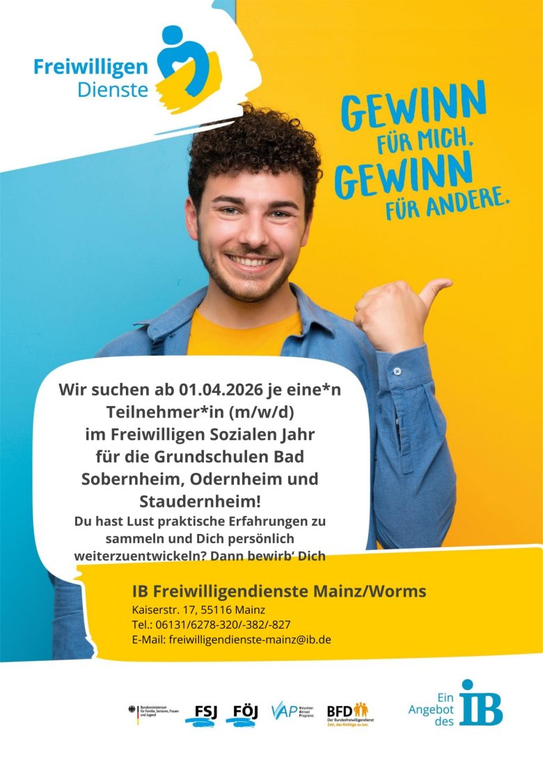 Teilnehmer*in (m/w/d) Freiwilliges Soziales Jahr für die Grundschulen Bad Sobernheim, Odernheim & Staudernheim ab 01.04.2026 gesucht